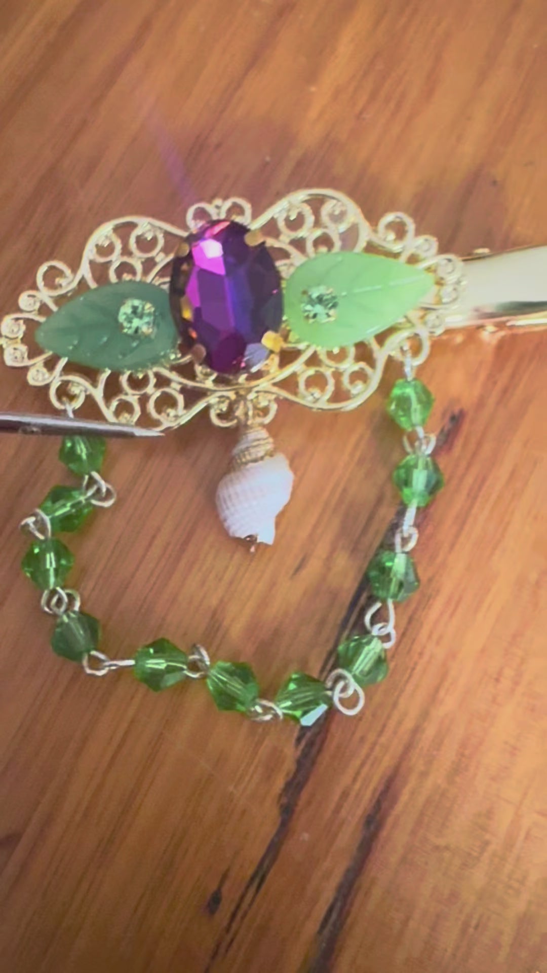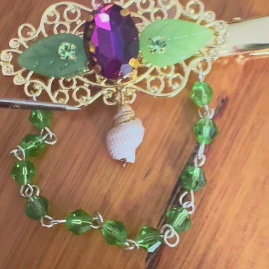 🌿 Bijou Enchanted Leaf – Czech Crystal Seashell Hair Jewel