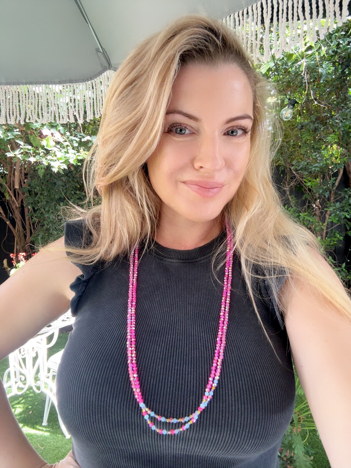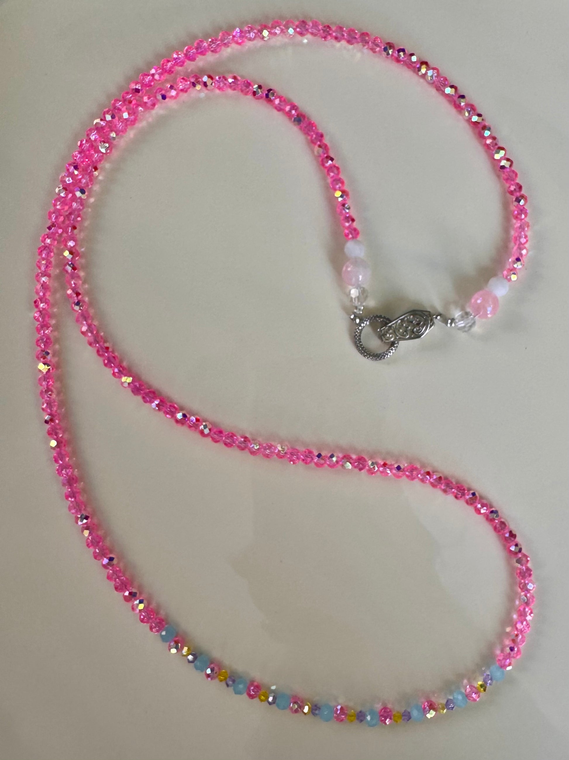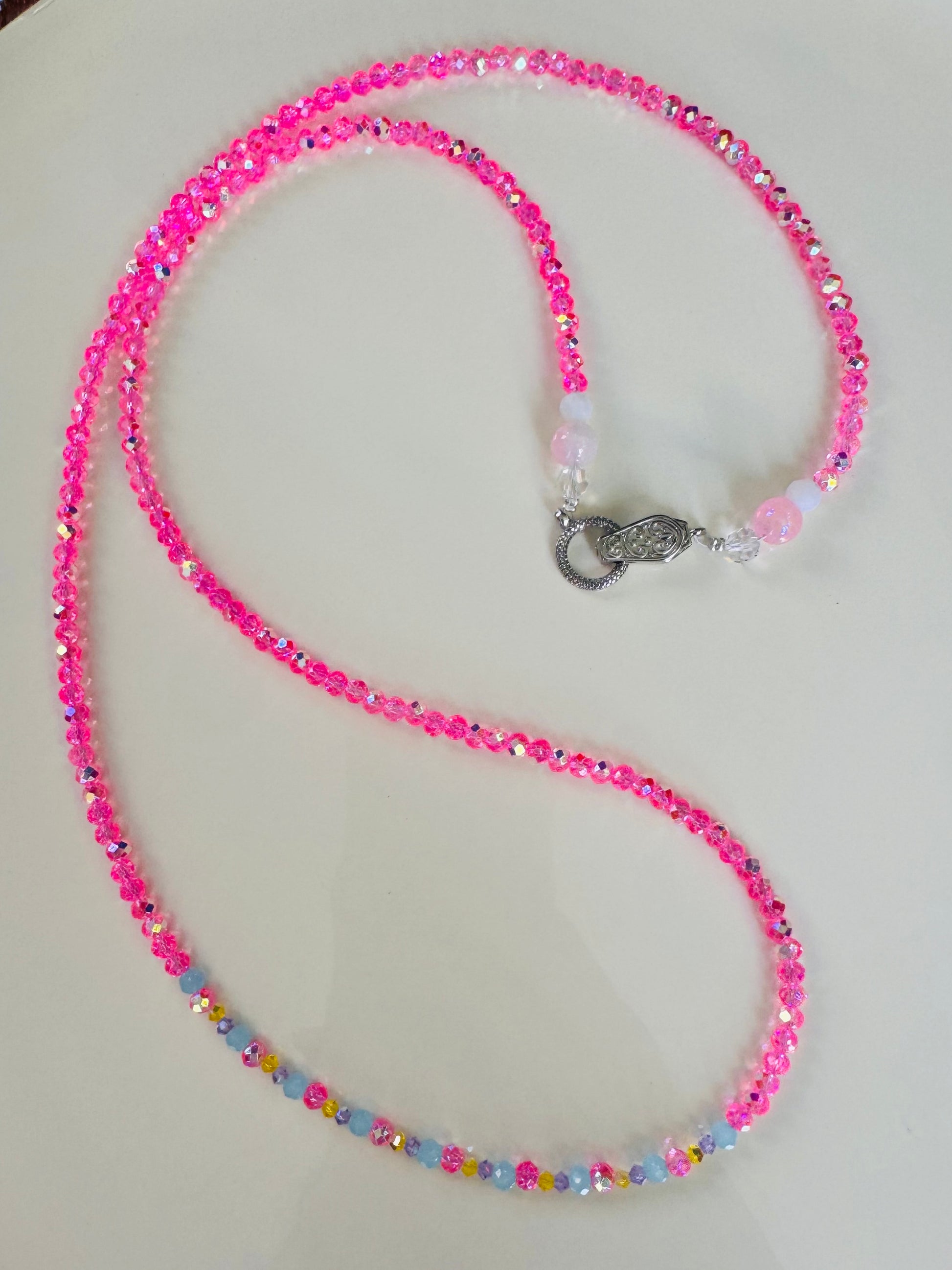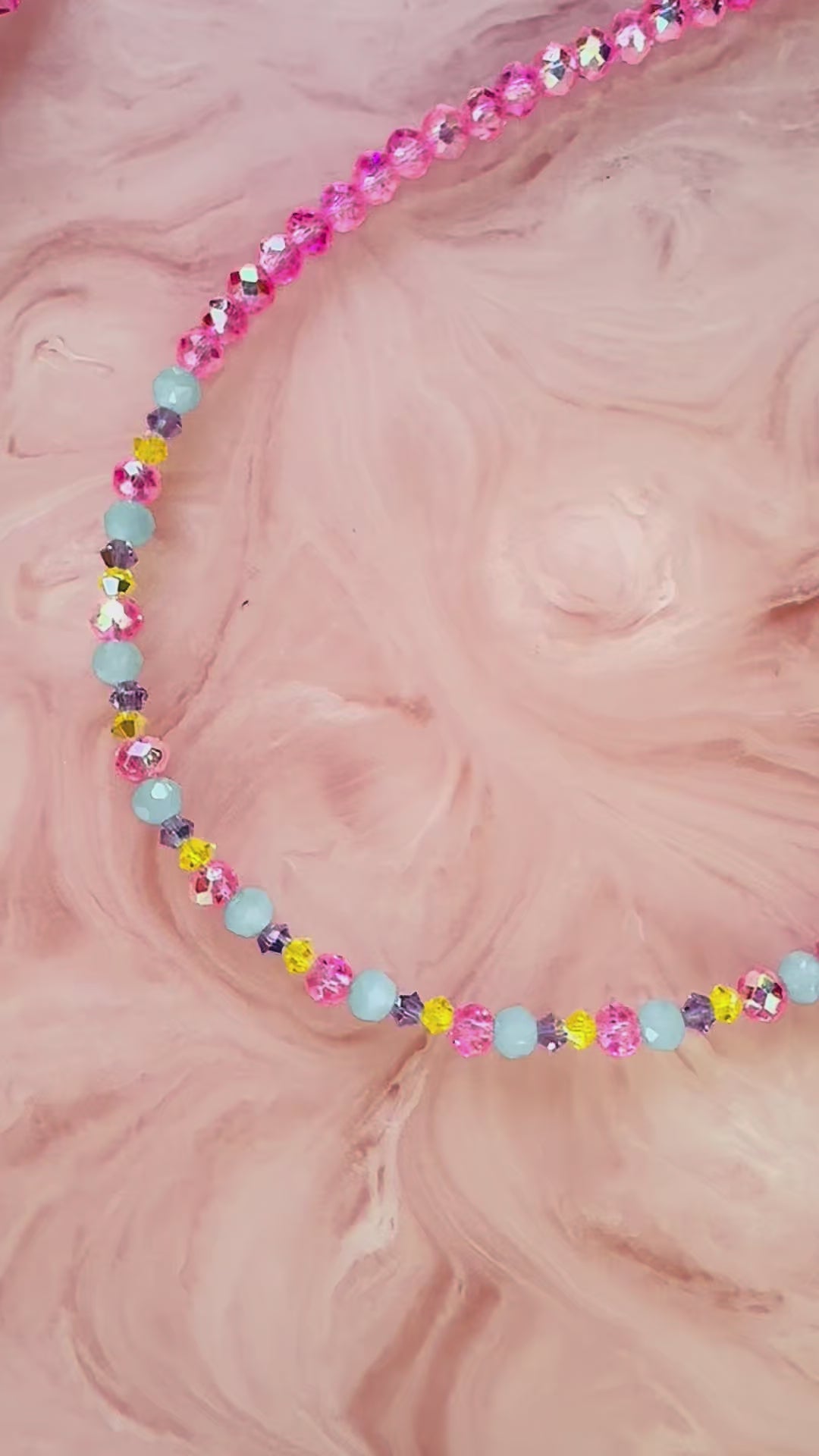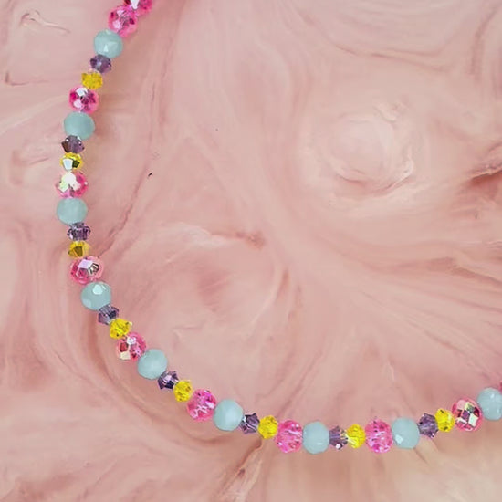 本物のスワロフスキークリスタルと簡単に開閉できる真鍮製のゴールド留め金が付いた、パステルマカロンカラーの手作りビーズネックレス。