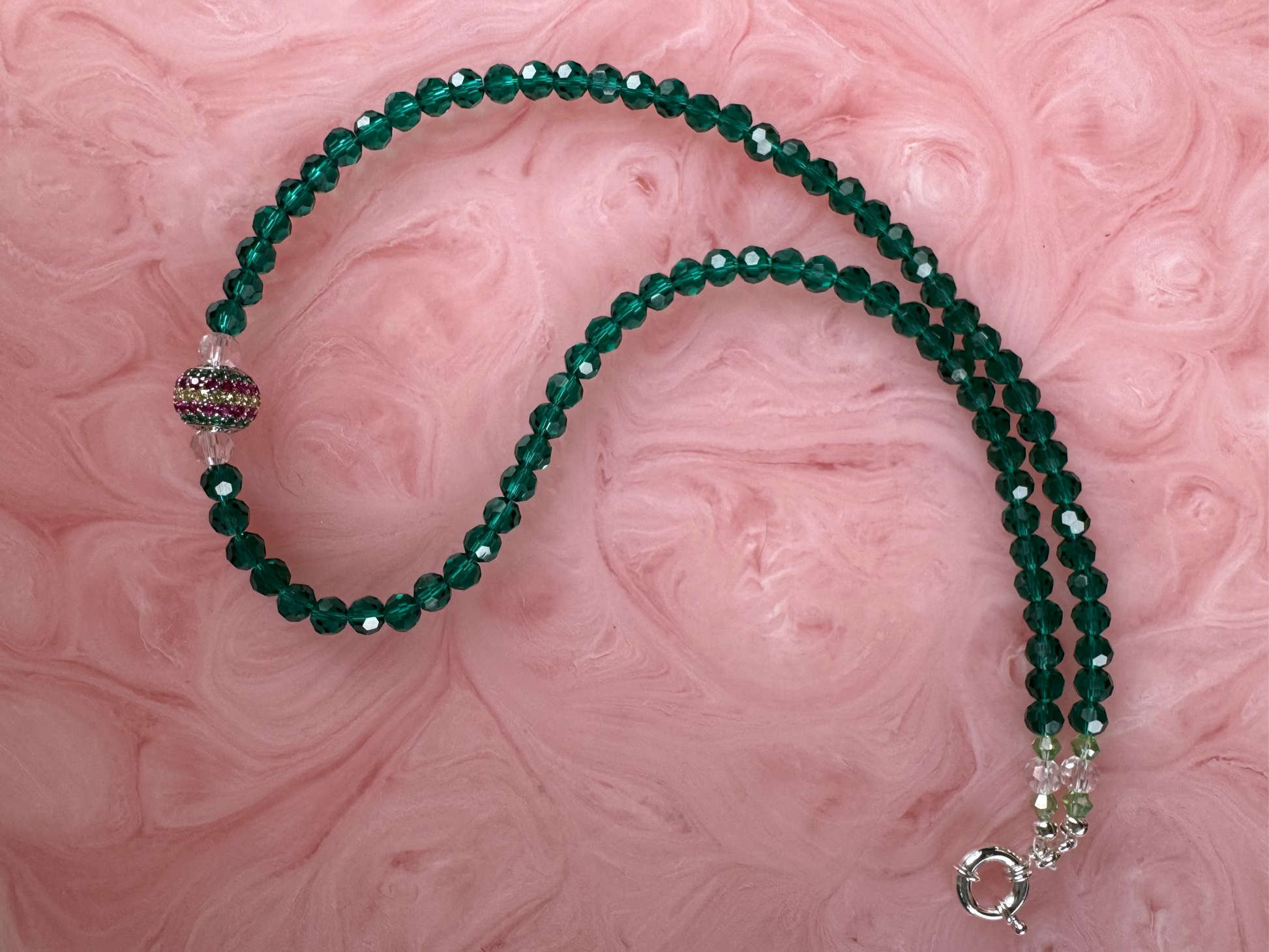 Emerald Green Crystal Necklace w Rhodium Sterling Silver