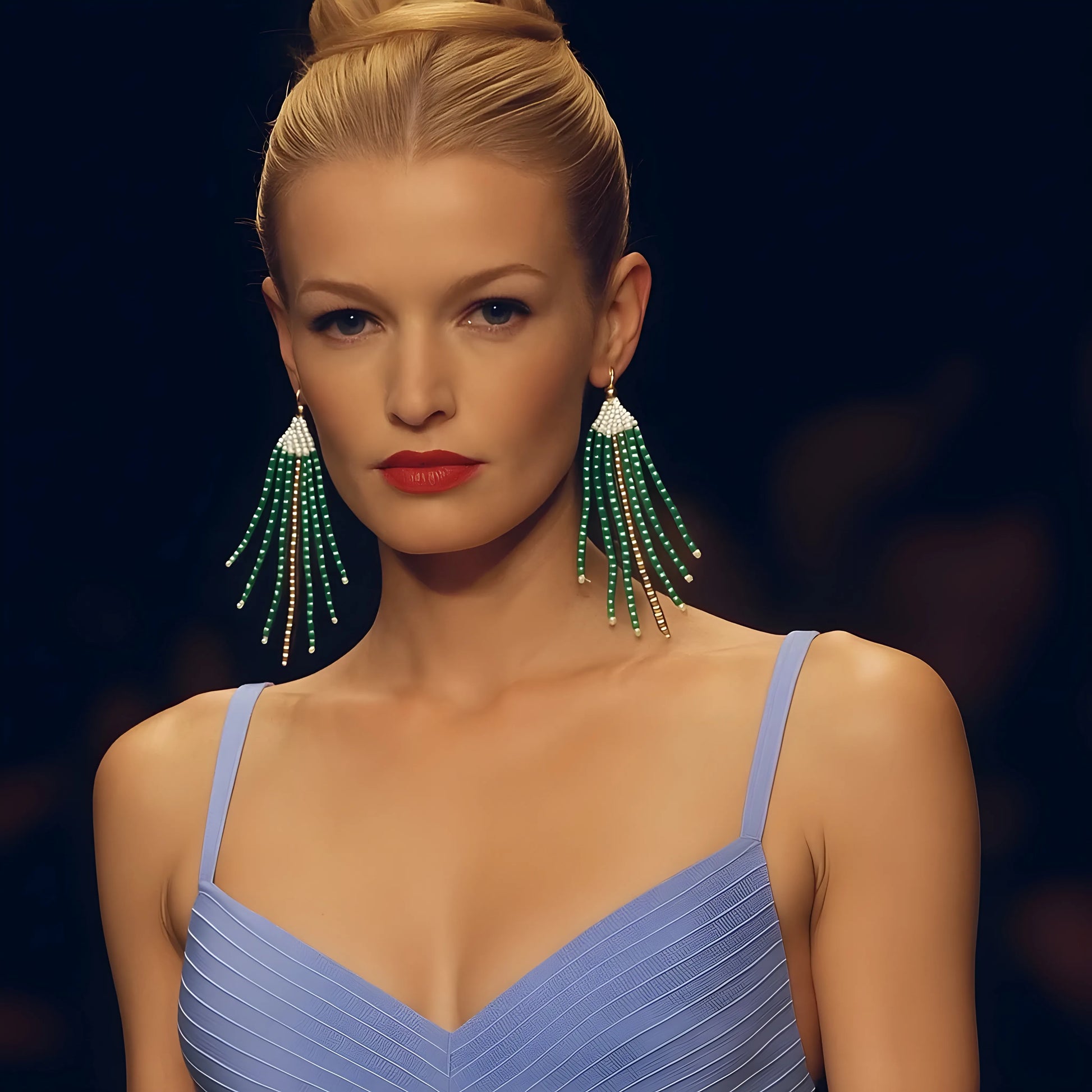 Green White Sea Urchin Handmade Chandelier Seed Bead Earrings