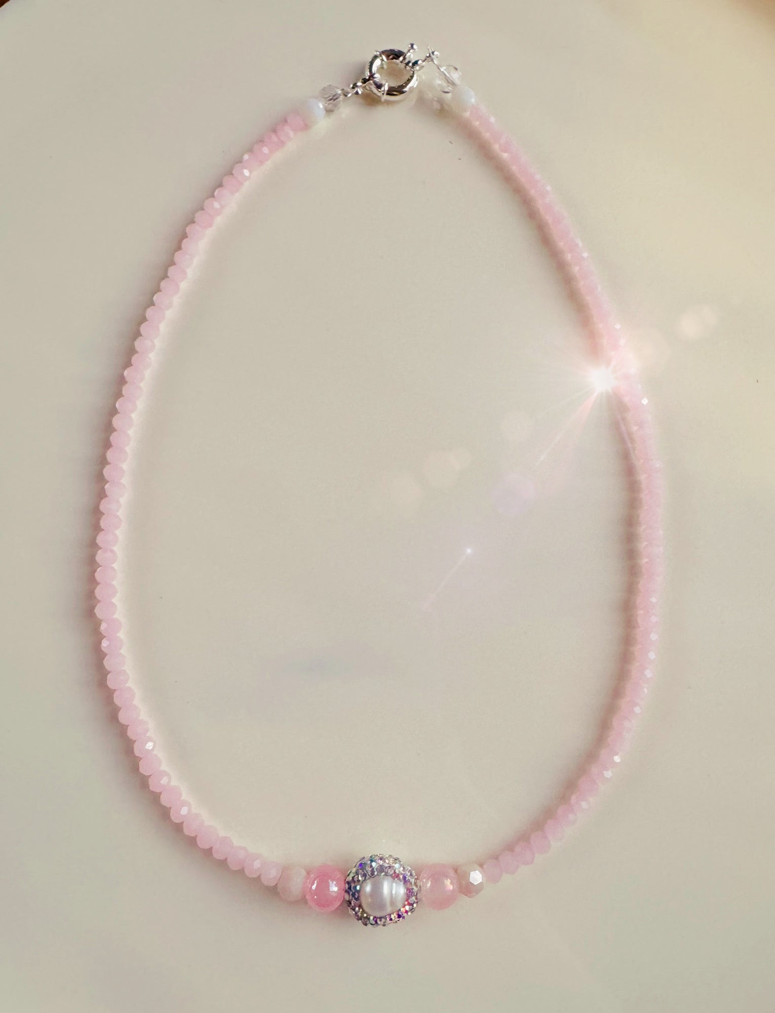 Pastel Pink ~ Crystal Bead & Pearl Necklace