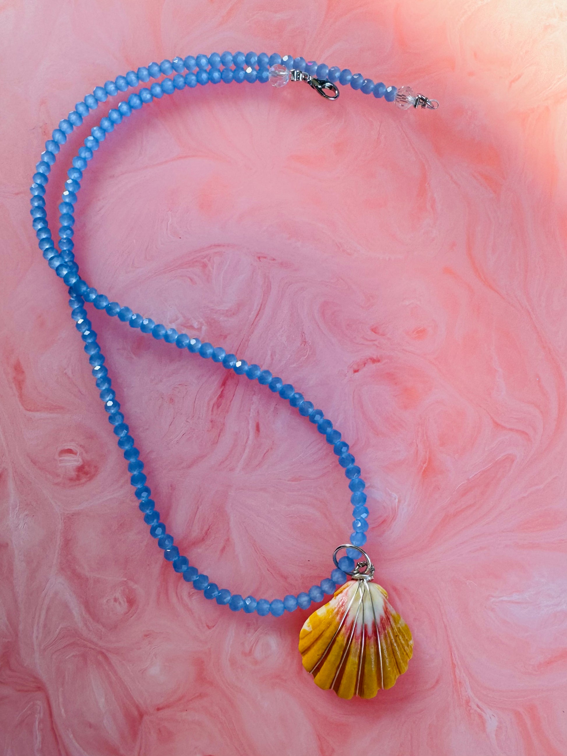 Handcrafted with luminous beads, delicate glass accents, and finished with a stunning rare Hawaiian Sunrise seashell that’s rare and beautiful. ✨