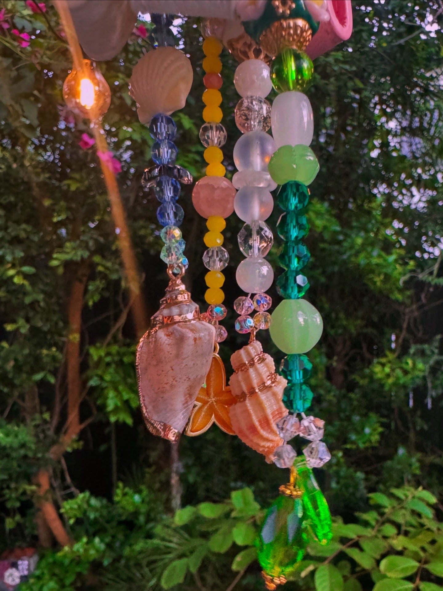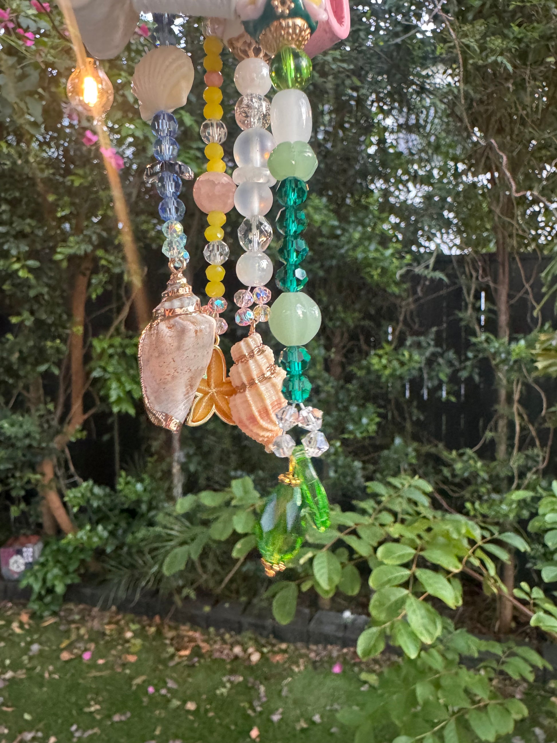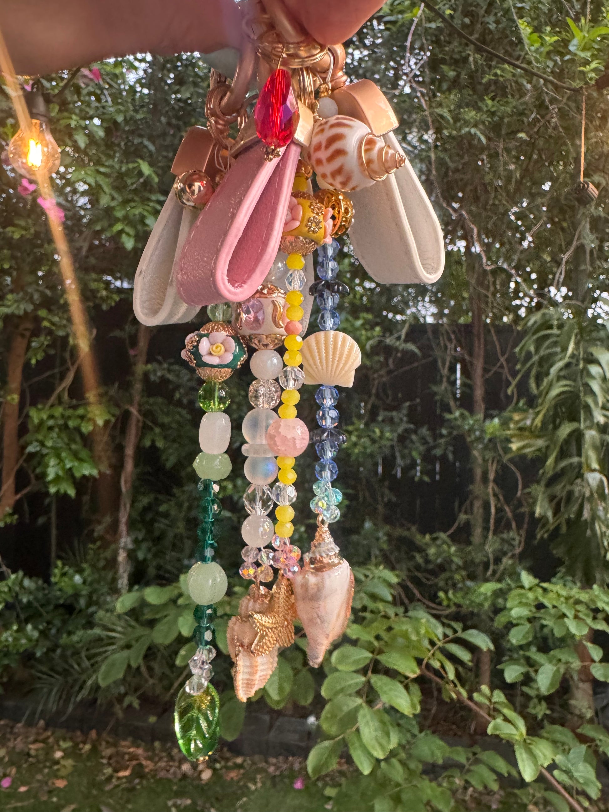 Handmade beaded bag charms that can also be used as a keyring. Featuring our signature seashells, genuine Czech crystals and easy to open/close brass gold handbag / key clasp.