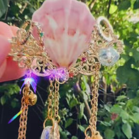 Drape your hair in the mystique of the sea with the Queen of the Tides hair clip — a breathtaking blend of rare coastal beauty and opulent craftsmanship. Cast in radiant 14k gold, this one-of-a-kind accessory showcases hand-selected rare seashells, shimmering pink crystals, and a luminous accents, evoking the ethereal charm of a sunlit tidepool.