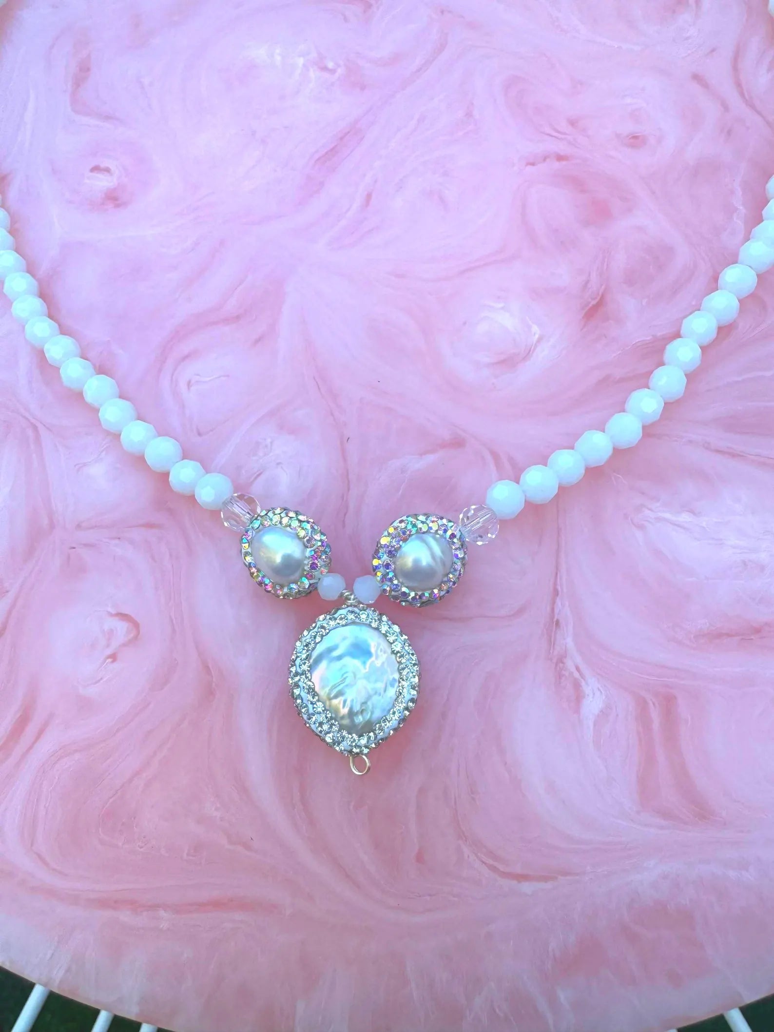 Snow Queen ~ Ice Necklace feat. Genuine Pearls and Crystals